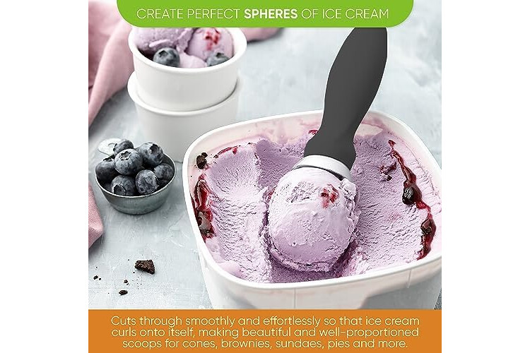 Create Perfect Spheres Of Ice Cream - Cuts through smoothly and effortlessly so that ice cream curls onto itself, making beautiful and well-proportioned scoops for cones, brownies, sundaes, pies and more.