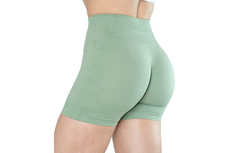 AUROLA CAMO Collection Workout Shorts for Women Subtle Logo Seamless Scrunch Gym Yoga Running Active Short