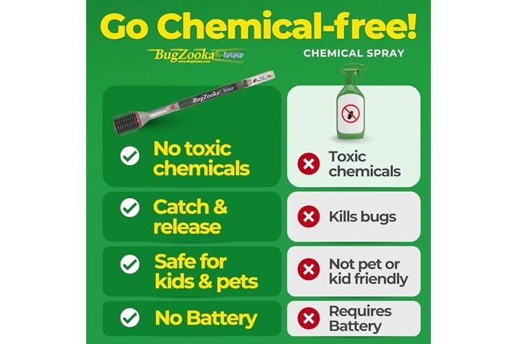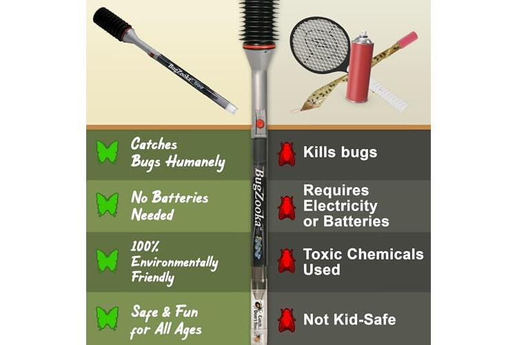 • NO BATTERIES NEEDED: Eco-friendly and always ready, the BugZooka works without electricity or batteries, making it a must-have household tool