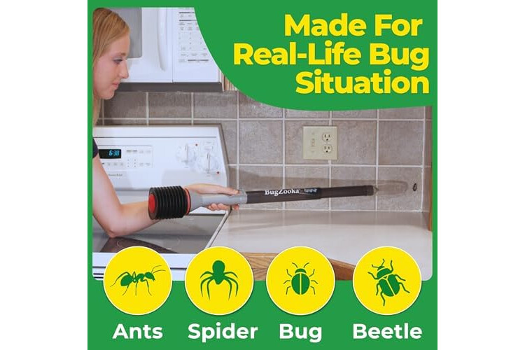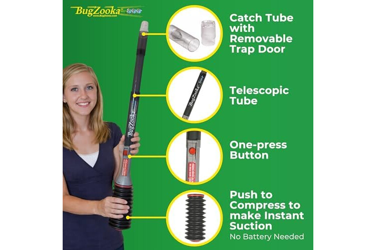 • POWERFUL SUCTION TECHNOLOGY: Uses a spring-loaded mechanism to create instant vacuum suction, quickly capturing bugs from a safe distance