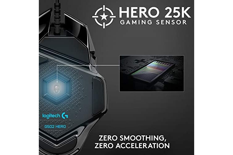 Hero 25K sensor through a software update from G HUB, this upgrade is free to all players: this Logitech gaming mouse has 1:1 tracking, 400-plus ips, 100 - 25,600 dpi plus zero smoothing, filtering, or acceleration.