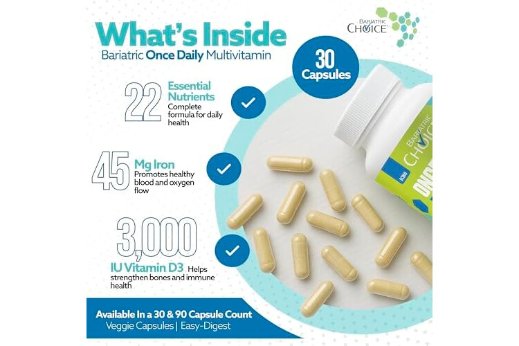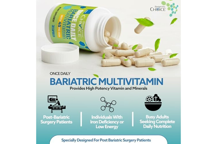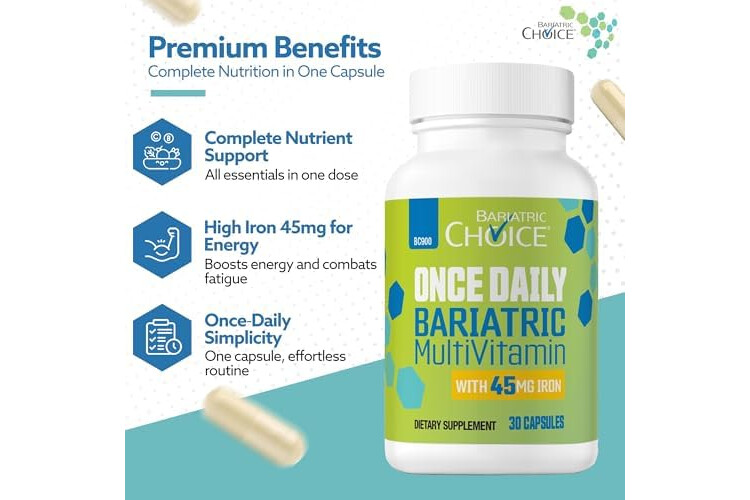 Bariatric Choice Once-Daily Bariatric Multivitamin with 45 mg of Iron | Easy to Swallow Capsule | Vitamin for Bariatric Surgery Patients | 30 Count (1-Month Supply)