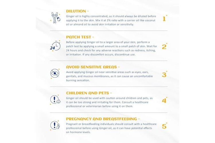 Aromatically use ginger oil in diffusers, or topically use over the upper abdomen to stimulate strength and responsibility, or massage your body to improve body's natural circulation and relieve pain