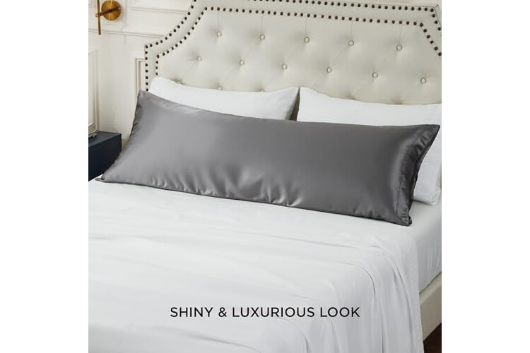 Bedsure Body Pillow Cover 20x54 Inches - Dark Grey Satin Similar to Silk Pillowcase for Hair and Skin, Cooling and Silky Long Body Pillow Case Cover with Envelope Closure, Gifts for Women Men