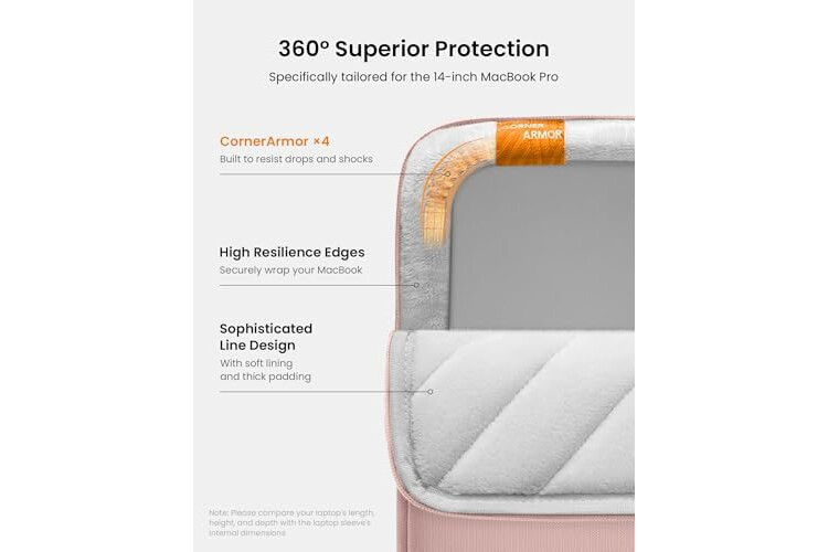 Military-Grade Protection: To combat the toughest situations: from falls to shocks to vibrations, tomtoc proposed the concept of 360 protection and designed the laptop sleeve with CornerArmor Technology, high resilience edges, and high-density soft padding. It passed the Military-Standard-Drop-Test while also maintaining a sleek design