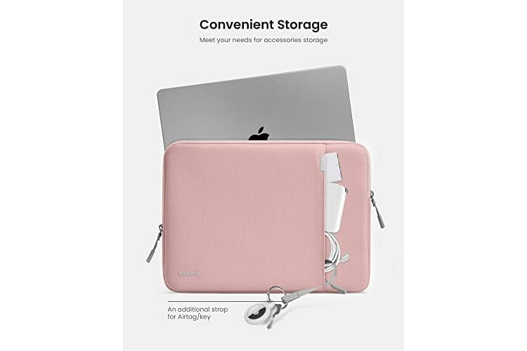 Convenient Storage: A laptop is never the only thing you need to take. Maybe your charger, cable, mouse, external backup drive, etc. The extra front pocket makes go with just the case possible. And an additional strap is designed here for your Airtag or key