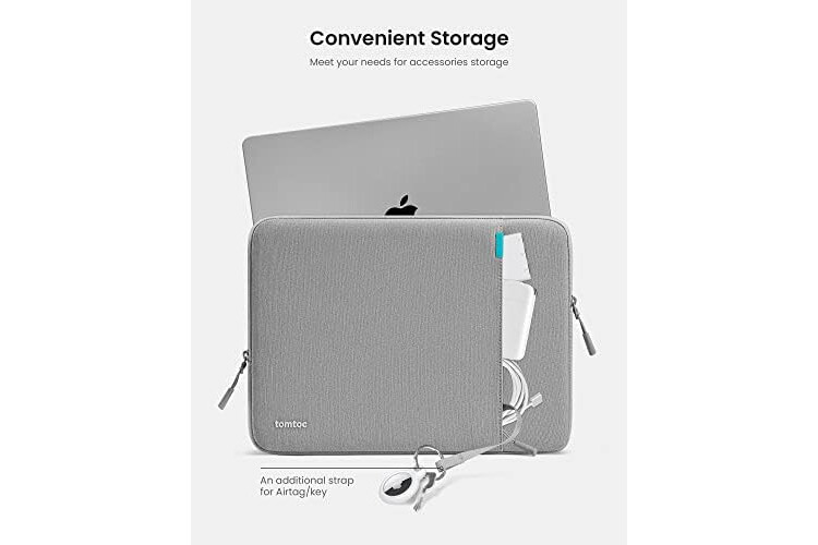 Convenient Storage: A laptop is never the only thing you need to take. Maybe your charger, cable, mouse, external backup drive, etc. The extra front pocket makes go with just the case possible. And an additional strap is designed here for your Airtag or key