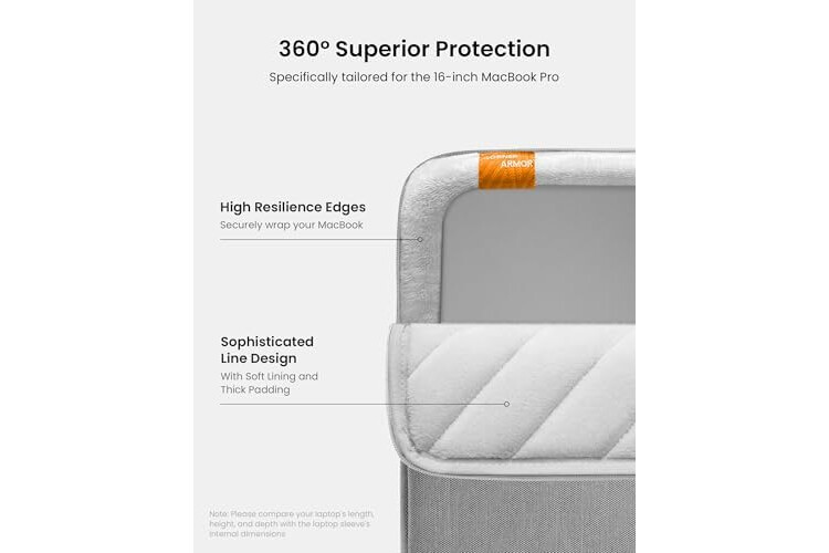 Military-Grade Protection: To combat the toughest situations: from falls to shocks to vibrations, tomtoc proposed the concept of 360 protection and designed the laptop sleeve with CornerArmor Technology, high resilience edges, and high-density soft padding. It passed the Military-Standard-Drop-Test while also maintaining a sleek design