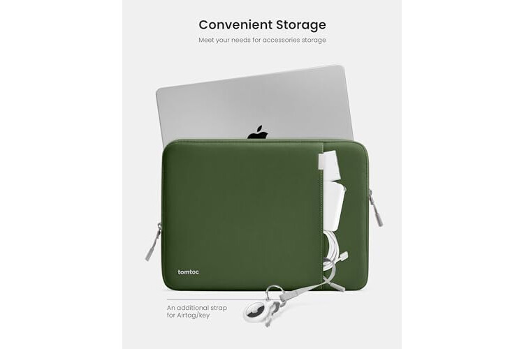 Convenient Storage: A laptop is never the only thing you need to take. Maybe your charger, cable, mouse, external backup drive, etc. The extra front pocket makes go with just the case possible. And an additional strap is designed here for your Airtag or key