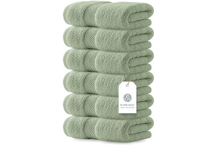 HOTEL COLLECTION - 6-Piece Hand Towels are generously Sized at 16x30 inches. Each towel is 100% combed cotton - soft, durable, quick-dry, and wonderfully absorbent. It is more absorbent than any Turkish Cotton Face Towel.
