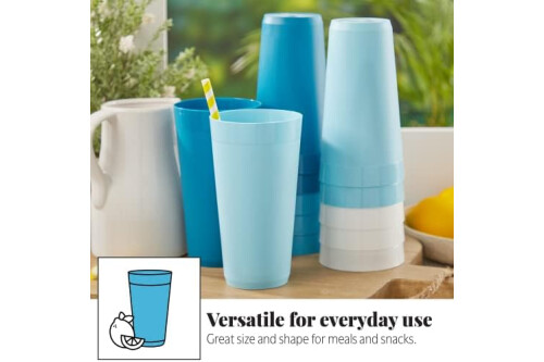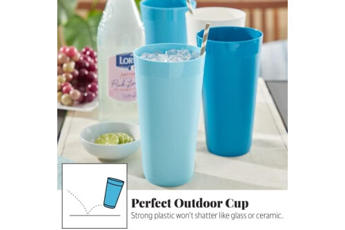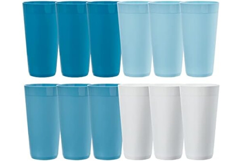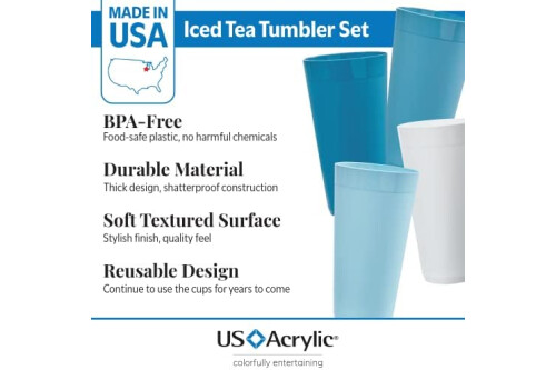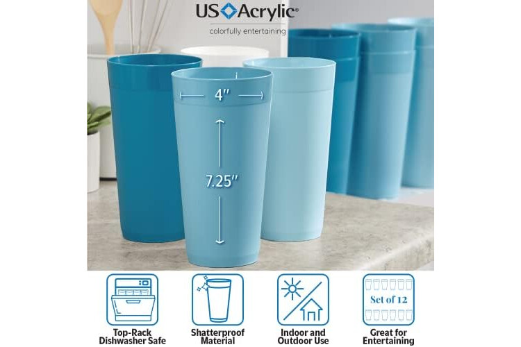 US Acrylic Newport 32 ounce Unbreakable Plastic Stackable Iced-Tea Tumblers in Blue Sky | Set of 12 Drinking Cups | Reusable, BPA-free, Made in the USA, Top-rack Dishwasher and Microwave Safe