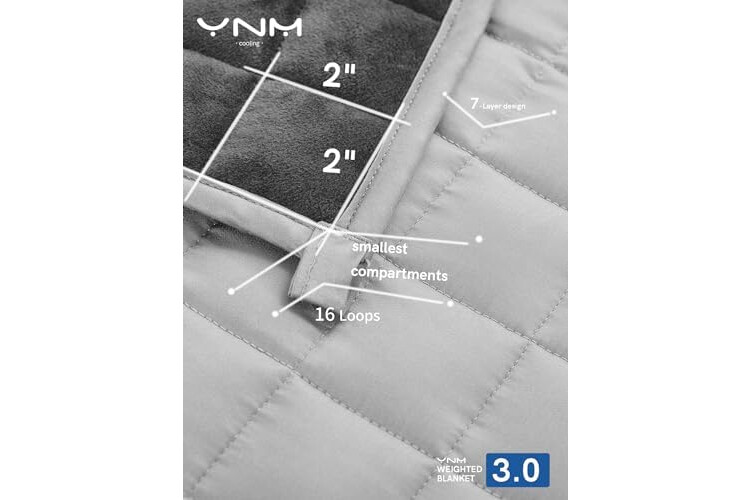 [Innovative Design] The 7-layer system design adapts to the curve of your body for optimal comfort and the 2x2-inch smallest sections allow for more equitable weight distribution. It includes more glass beads and less fiberfill for enhanced temperature regulation. In addition, a three-dimensional lock bead stitching method prevents leaking of beads. It has the finest stitching (0.25mm per stitch) to avoid movement of weight between compartments. All of these attributes make it a superb blanket.