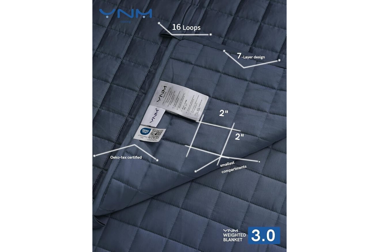 YnM Cooling Weighted Blanket, Oeko-Tex Certified Material with Premium Glass Beads, Bed Blanket for One Person of 160lbs, Ideal for Queen/King Bed (60x80 Inches, 17 Pounds, Blue Grey)