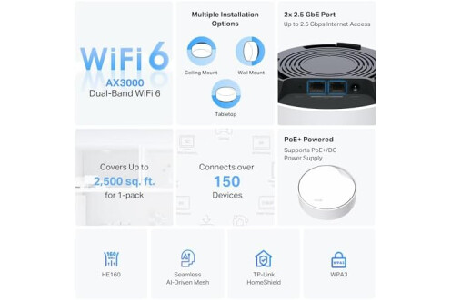 2.5G Ports for Peak Performance - With two 2.5 Gigabit Ethernet Port, each Deco X50-PoE router delivers exceptional multi-Gigabit performance to support better and faster WiFi. Break through bottlenecks and drive your devices to peak performance²