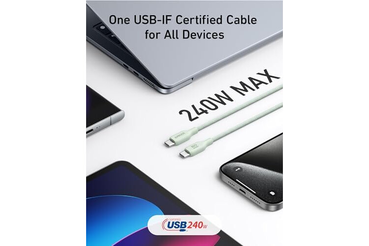 Anker USB C Cable, 240W Bio-Braided Type C Fast Charge Cord for iPhone 17 Series, MacBook Pro 2020, iPad Pro,and More(USB 2.0, 3FT, Natural Green)