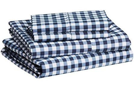 Amazon Basics Lightweight Super Soft Easy Care Microfiber 4-Piece Bed Sheet Set with 14-Inch Deep Pockets, California King, Gingham Plaid