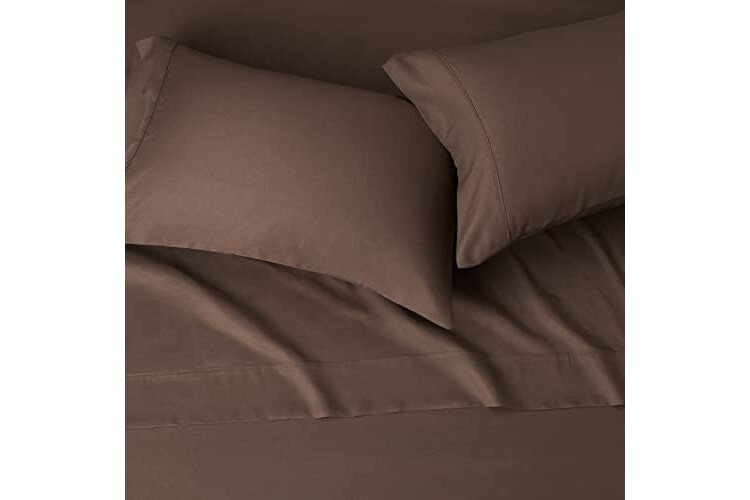 Amazon Basics Lightweight Super Soft Easy Care Microfiber 4-Piece Bed Sheet Set with 14-Inch Deep Pockets, Cal King, Chocolate