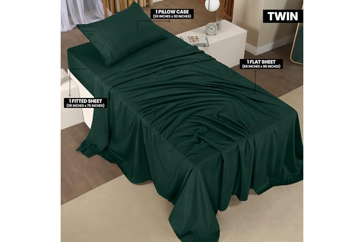 Utopia Bedding Twin Sheet Set – 3 Piece Bed Sheets for Twin Size Bed, Soft and Breathable Microfiber, Includes 1 Fitted Sheet, 1 Flat Sheet and 1 Pillowcase (Emerald Green)