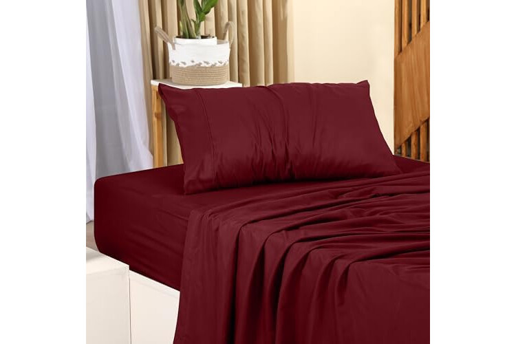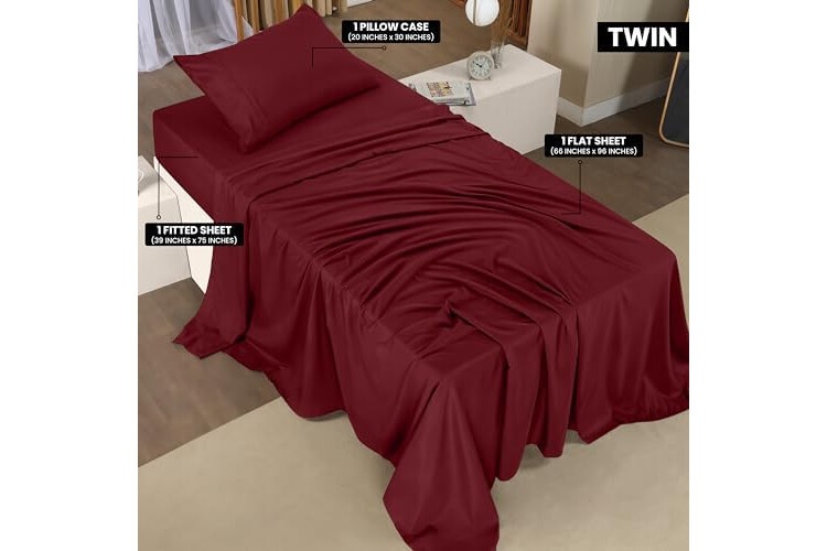 Utopia Bedding Twin Sheet Set – 3 Piece Bed Sheets for Twin Size Bed, Soft and Breathable Microfiber, Includes 1 Fitted Sheet, 1 Flat Sheet and 1 Pillowcase (Burgundy)