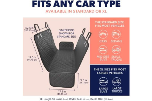 WHICH SIZE SHOULD I GET: Reference our sizing guide found in the image set to the left or further down the page to determine which dog seat cover for back seat best fits your vehicle