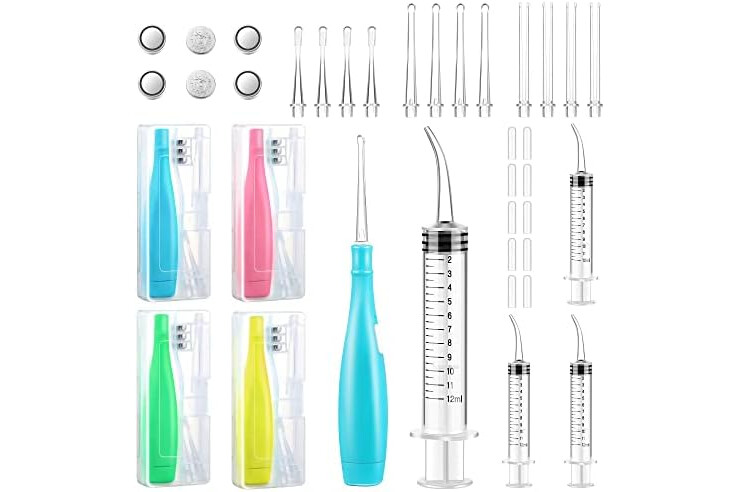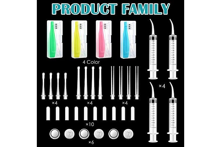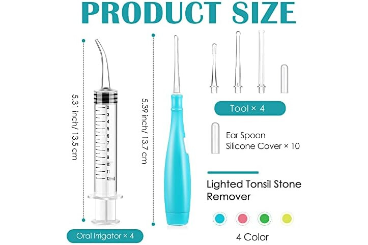Tonsil 18 Pcs Tonsil Stone Removal Kit Includes 4 Pcs Tonsil Stone Remover with LED Light and Batteries 4 Pcs Curved Irrigation Syringe 10 Pcs Silicone Spoon Cover to Get Rid of Bad Breath