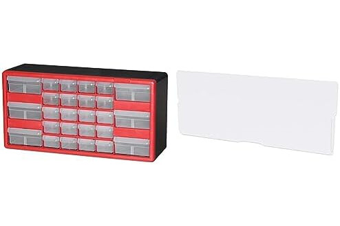 Akro-Mils 10126, 26 Drawer Plastic Parts Storage Hardware and Craft Cabinet, 20-Inch W x 6-Inch D x 10-Inch H, Red & 40717 Length Dividers for Plastic Storage Hardware and Craft Cabinet Large Drawers