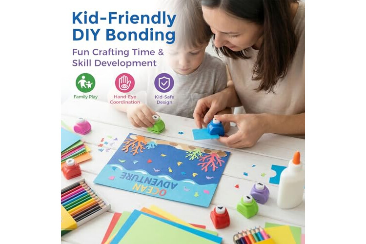 Kid-Friendly DIY Bonding: Fun Crafting Time - Specially designed for families, the 1.25-inch mini size is perfect for small hands to grip and operate。As a highly-rated hole puncher for crafts, it allows parents to guide children in creating various sea creatures, enhancing their fine motor skills and hand-eye coordination while enjoying DIY fun. It’s an ideal way to bond and build deeper emotional connections through shared creativity