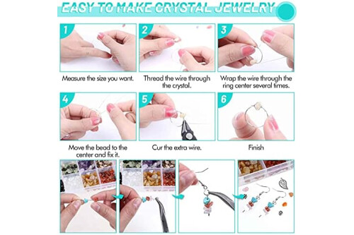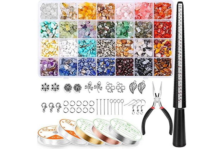 1660PCS GREAT VALUE SET – Selizo crystal stone beads for jewelry making kit contains 1400pcs chip beads, 3 rolls of jewelry wire, 2 rolls of elastic string, 50pcs different shaped pendants, 50pcs earring hooks, 100pcs head pins, 50pcs jump rings, 10pcs lobster clasp and jewelry pliers for jewelry ring crafts making