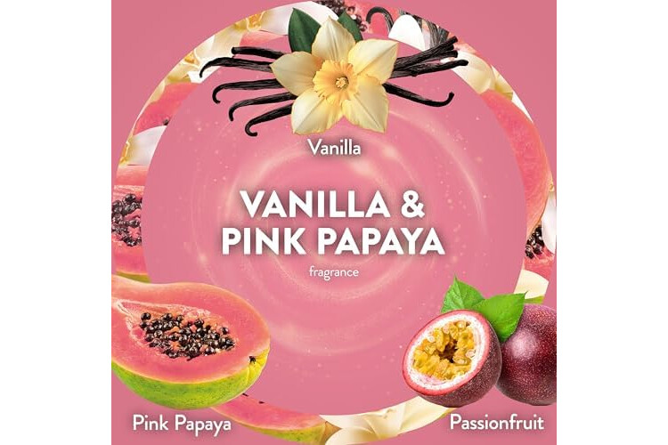 • FRAGRANCE: Pink Papaya and juicy, exotic red fruits add a modern twist to this vanilla fragrance for a harmonious fusion
