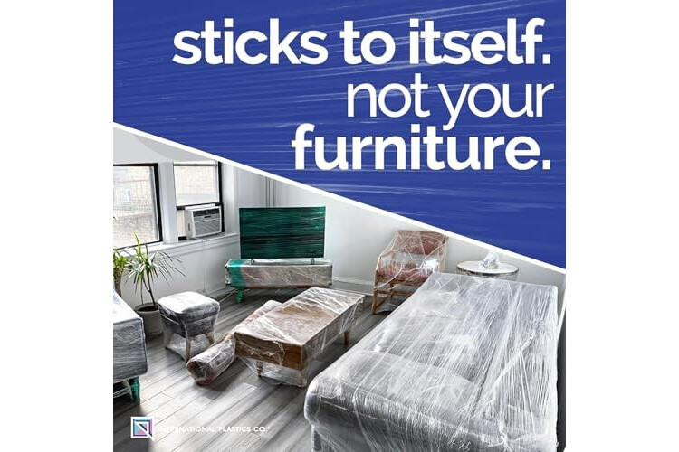 International Plastics Co. 16.5" Stretch Film/Wrap 1200ft 500% Stretch Clear Cling Durable Adhering Packing Moving Packaging Heavy Duty Shrink Film (1 Pack W/Handles, Clear)