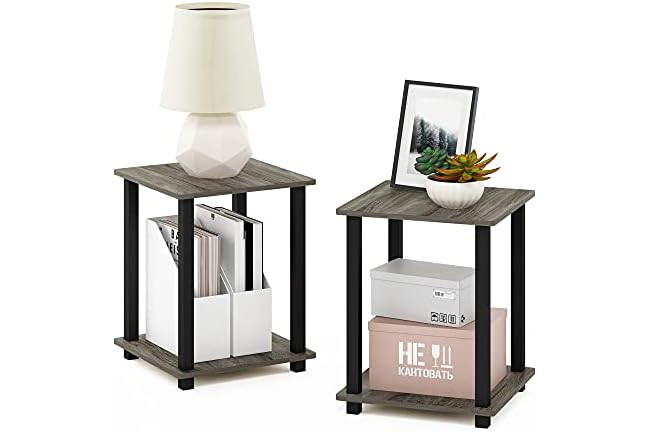 Furinno SIMPLISTIC Side Table Set of 2, 2-Tier Square Modern End Table, Nightstand, Night Stand, Bedside Table, Toolless Assembly, for Living Room, Bedroom, French Oak
