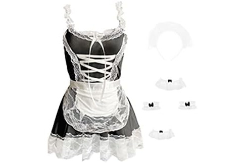 mzenuop Maid Dress Cosplay Sweet Classic Apron Costume with Socks
