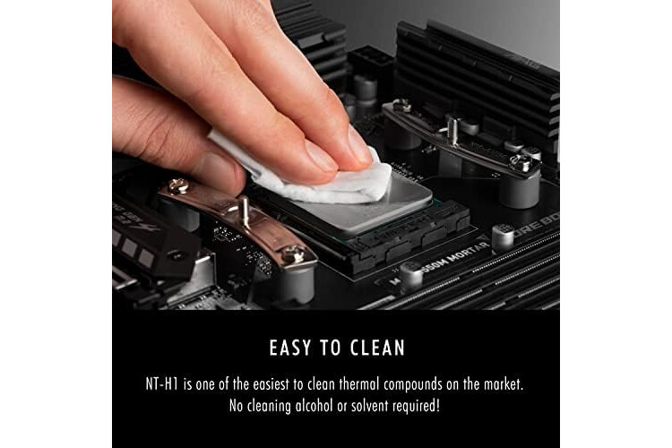 Easy to apply (no need to spread before heatsink installation) and easy to clean with dry paper towel or tissue (no cleaning alcohol required)