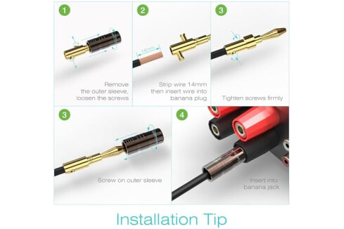 [EASY INSTALLATION & DESIGN] Banana plugs make speaker wire installation a breeze and are great to use with A/V receivers, amplifiers, surround sound systems, banana wall plates