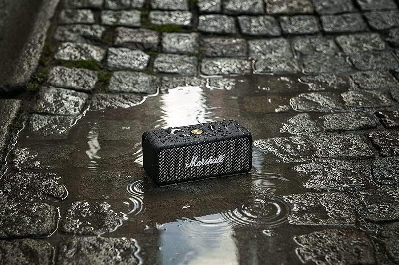 Rich, clear and loud, like the artist intended. Emberton utilizes True Stereophonic, a unique form of multi-directional sound from Marshall. Experience absolute 360° sound where every spot is a sweet spot. By separating out the spatial content of stereo recordings, Emberton produces a sound much larger than its size and outperforms most speakers in its class.Waterproof : Yes