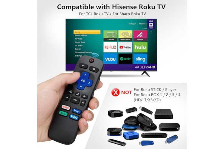 【COMPATIBILITY】This remote compatible for Hisense Roku TV, for TCL Roku TV, for Sharp Roku TV, for Onn Roku TV, for Philips Roku TV, for Westinghouse Roku TV, for Eement Roku TV, for Insignia Roku TV, for Jvc Roku TV, for RCA Roku TV, for Sanyo Roku TV ALL Models. Not for Roku Streaming Media Players, Not for Roku Express, Express +, Not for Roku Streaming Stick, Stick+, Not for Roku Premiere, Premiere+, Not for Roku Ultra, Roku Box 1, 2, 3, 4