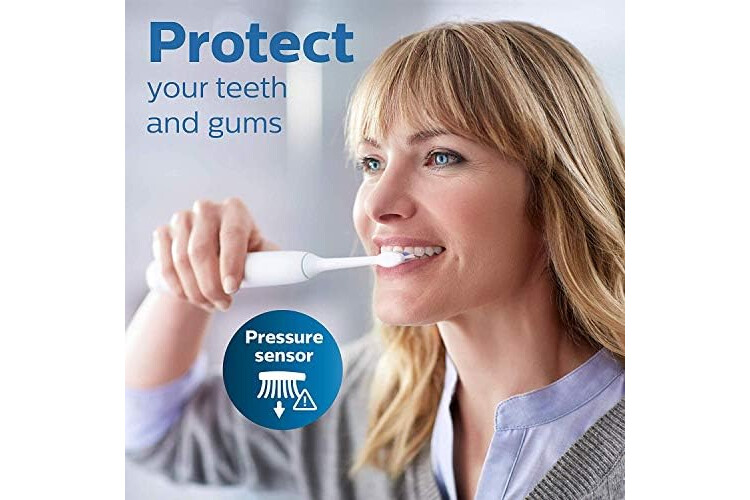Smart brushing: a pressure sensor that automatically detects pressure you apply, warns you, and reduces the toothbrush vibrations to help protect your gums