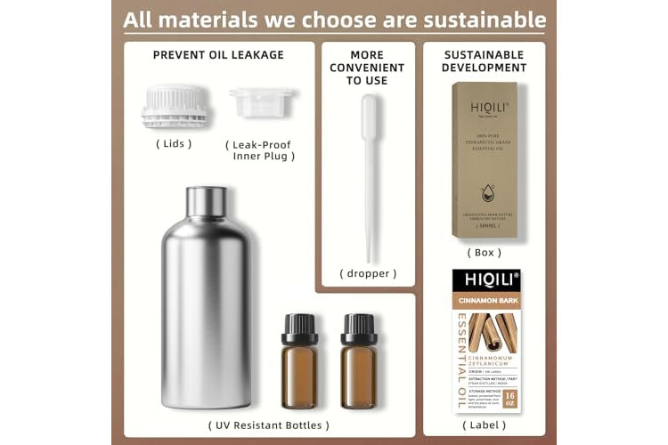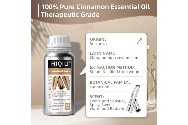 HIQILI Cinnamon Essential Oil for Candle, Spary & Diffuser - 100% Pure Natural - Indoor and Outdoor