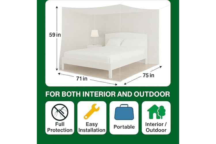 Full Coverage Protection: Rectangular design fully covers Full and Queen size beds, providing a reliable barrier against mosquitoes and other insects.