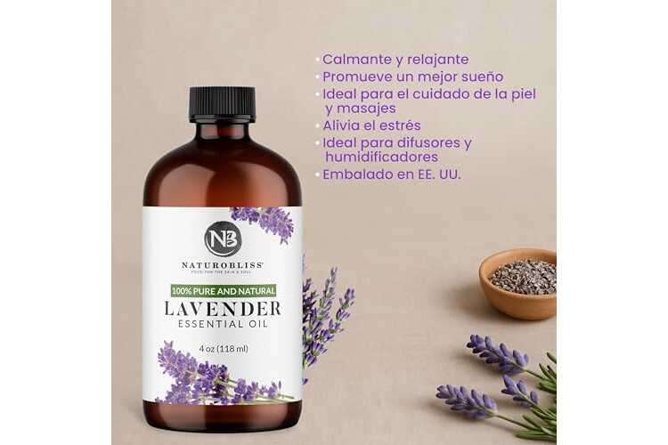 NaturoBliss Lavender Essential Oil with Glass Dropper - 100% Pure and Natural - Essential Oils for Diffuser, Aromatherapy, Soap and Candle Making, Lavender Essential Oil Pure, Lavender Oil, 4 Fl Oz