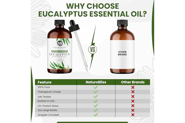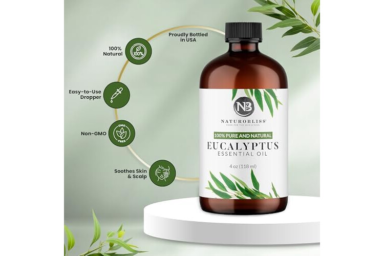 NaturoBliss Essential Oil with Glass Dropper - 100% Pure and Natural - Essential Oils for Diffuser, Aromatherapy, Soap and Candle Making, Eucalyptus Essential Oil, Eucalyptus Oil, 4 Fl Oz
