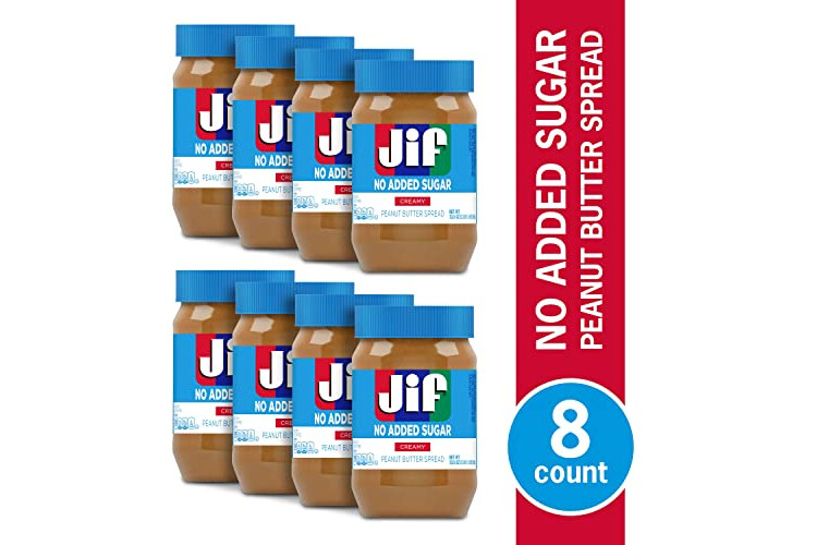 • Contains 8, 33.5oz jars of Jif No Added Sugar Creamy Peanut Butter Spread