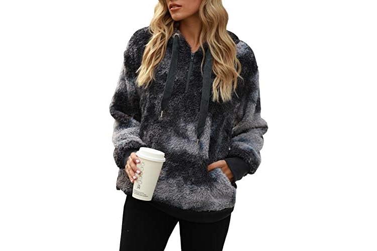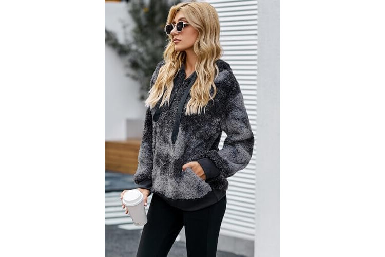 Yanekop Womens Fuzzy Fleece Pullover Oversized Sherpa Jacket Half Zip Pullover Sweaters Winter Faux Fur Jacket Coat