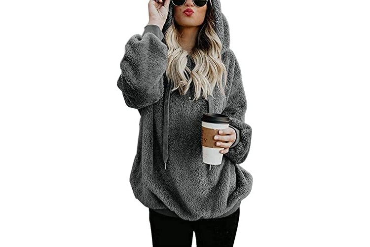 Yanekop Womens Fuzzy Fleece Pullover Oversized Sherpa Jacket Half Zip Pullover Sweaters Winter Faux Fur Jacket Coat(B Dark Gray,L)