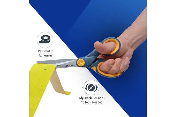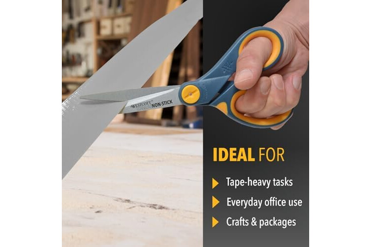 Specialized Non-Stick Scissors: Perfect for tasks like cutting through tape, hook-and-loop fasteners, and other adhesives, these sharp scissors feature specialized non-stick blades and comfortable handles