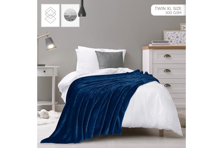 Utopia Bedding Fleece Blanket Twin XL Size Navy 300GSM Luxury Anti-Static Fuzzy Soft Microfiber Dorm Bed Blanket (90x76 Inch)