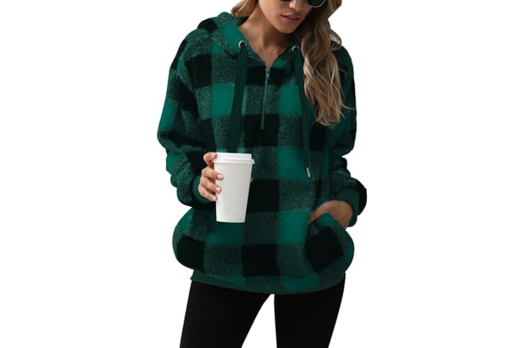 Nirovien Womens Sherpa Pullover Oversized Fuzzy Hoodie Double Fleece Sweatshirts Fluffy Plaid Outerwear Warm Coats