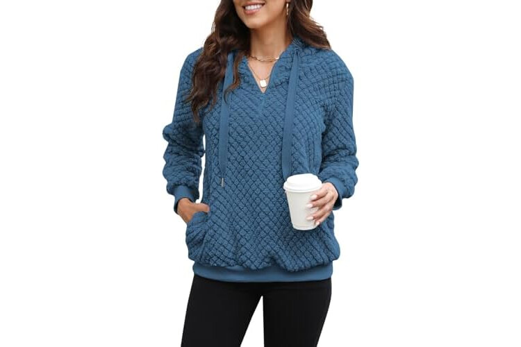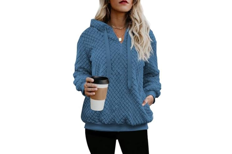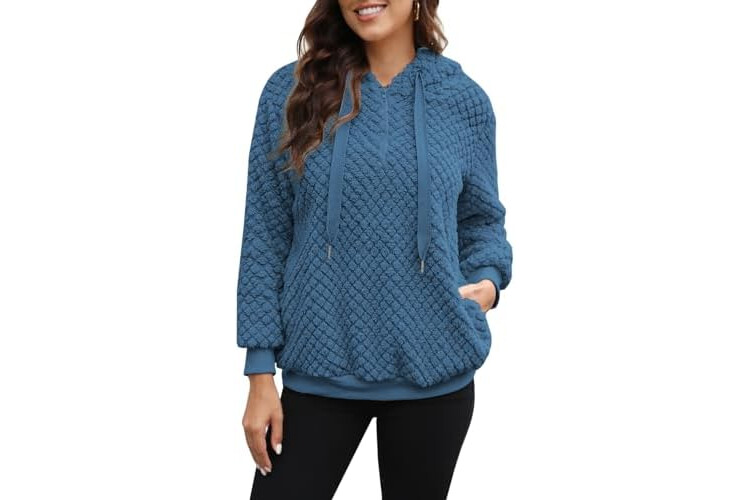 Nirovien Womens Sherpa Pullover Oversized Fuzzy Hoodie Double Fleece Sweatshirts Fluffy Plaid Outerwear Warm Coats
