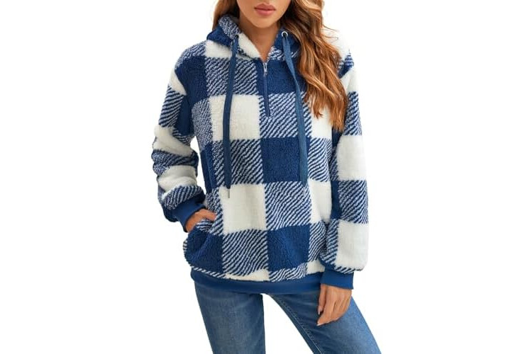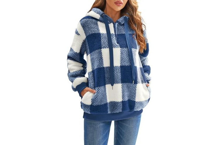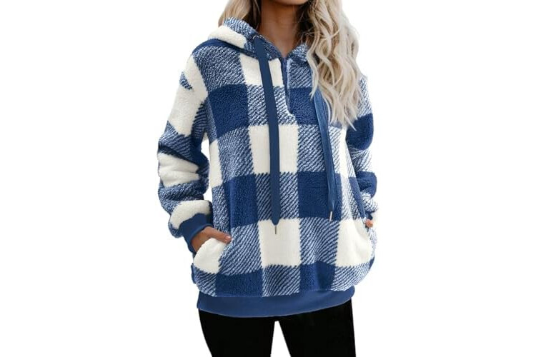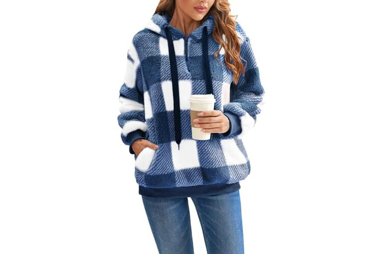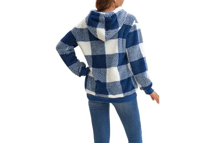 Nirovien Womens Sherpa Pullover Oversized Fuzzy Hoodie Double Fleece Sweatshirts Fluffy Plaid Outerwear Warm Coats