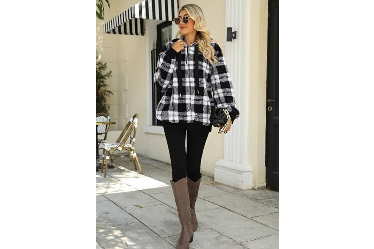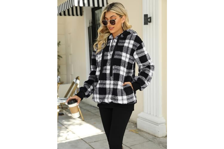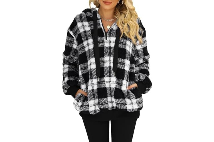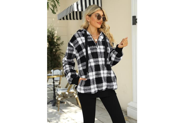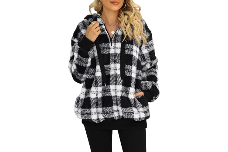 Nirovien Womens Sherpa Pullover Oversized Fuzzy Hoodie Double Fleece Sweatshirts Fluffy Plaid Outerwear Warm Coats